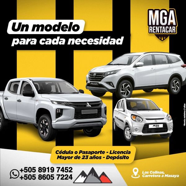 Correo: info@mgarentacar.net WhatsApp: +505 8919 7452 +505 8605 7224 Redes mgarentacar.ni